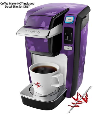 Decal Style Vinyl Skin compatible with Keurig K10 / K15 Mini Plus Coffee Makers Bokeh Butterflies Purple (KEURIG NOT INCLUDED)