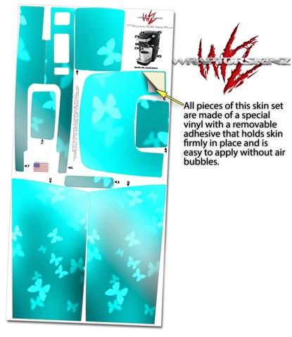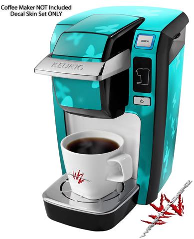 Decal Style Vinyl Skin compatible with Keurig K10 / K15 Mini Plus Coffee Makers Bokeh Butterflies Neon Teal (KEURIG NOT INCLUDED)