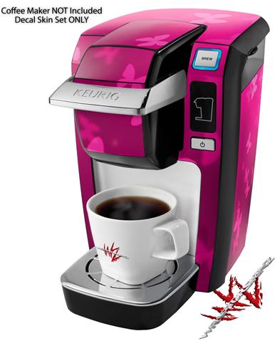 Decal Style Vinyl Skin compatible with Keurig K10 / K15 Mini Plus Coffee Makers Bokeh Butterflies Hot Pink (KEURIG NOT INCLUDED)