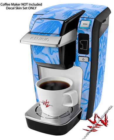 Decal Style Vinyl Skin compatible with Keurig K10 / K15 Mini Plus Coffee Makers Skull Sketches Blue (KEURIG NOT INCLUDED)