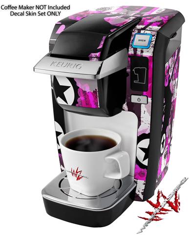 Decal Style Vinyl Skin compatible with Keurig K10 / K15 Mini Plus Coffee Makers Pink Star Splatter (KEURIG NOT INCLUDED)