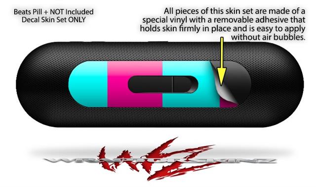 Decal Style Wrap Skin fits Beats Pill Plus Psycho Stripes Neon Teal and Hot Pink (BEATS PILL NOT INCLUDED)