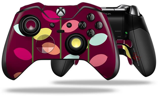 Plain Leaves On Burgundy - Decal Style Skin fits Microsoft XBOX One ELITE Wireless Controller