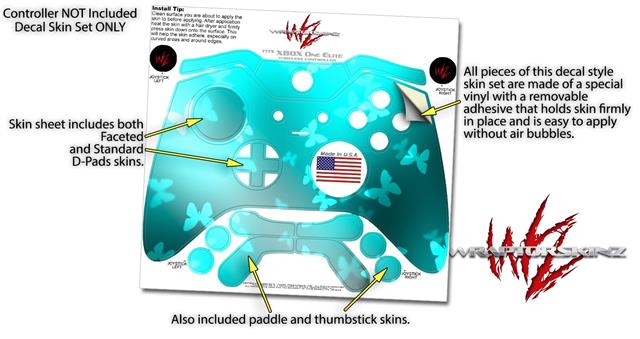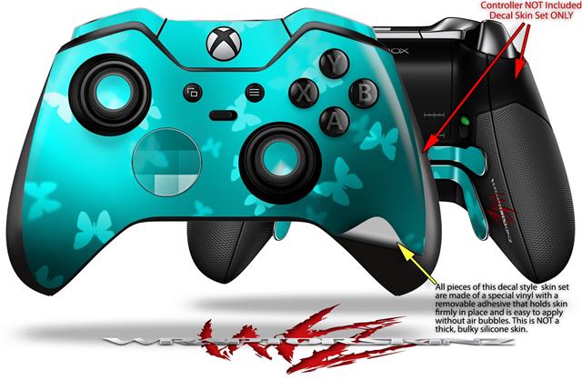 Bokeh Butterflies Neon Teal - Decal Style Skin fits Microsoft XBOX One ELITE Wireless Controller