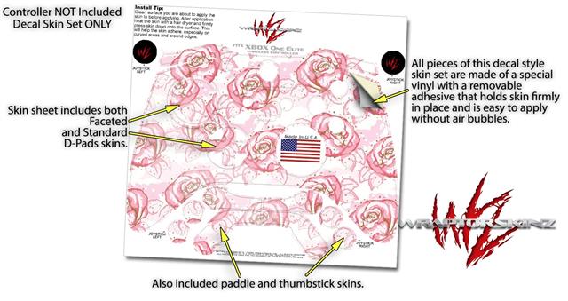 Flowers Pattern Roses 13 - Decal Style Skin fits Microsoft XBOX One ELITE Wireless Controller