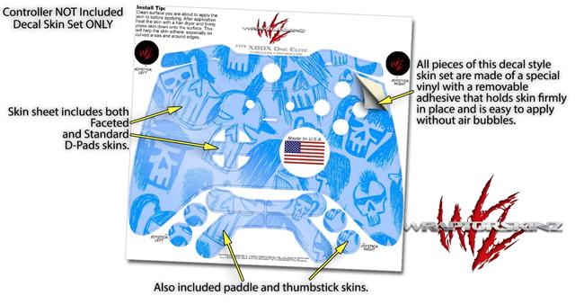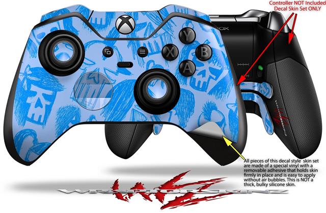 Skull Sketches Blue - Decal Style Skin fits Microsoft XBOX One ELITE Wireless Controller