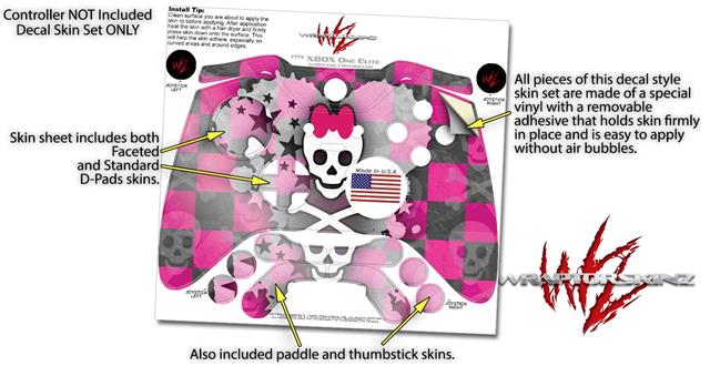Princess Skull Heart Pink - Decal Style Skin fits Microsoft XBOX One ELITE Wireless Controller