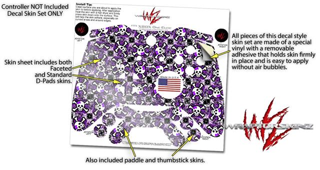 Splatter Girly Skull Purple - Decal Style Skin fits Microsoft XBOX One ELITE Wireless Controller