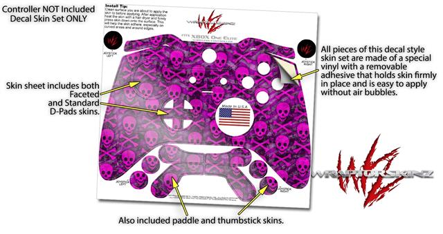 Pink Skull Bones - Decal Style Skin fits Microsoft XBOX One ELITE Wireless Controller