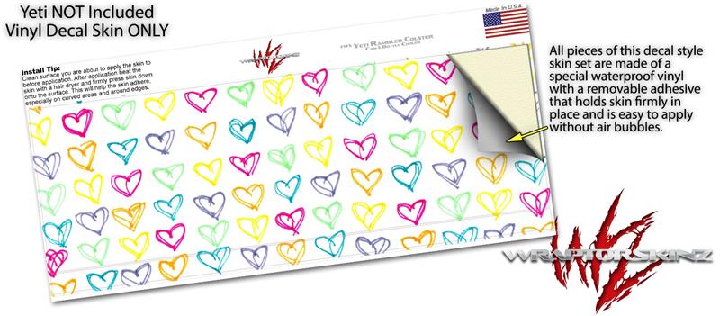 Skin Decal Wrap for Yeti Colster, Ozark Trail and RTIC Can Coolers - Kearas Hearts White (COOLER NOT INCLUDED)