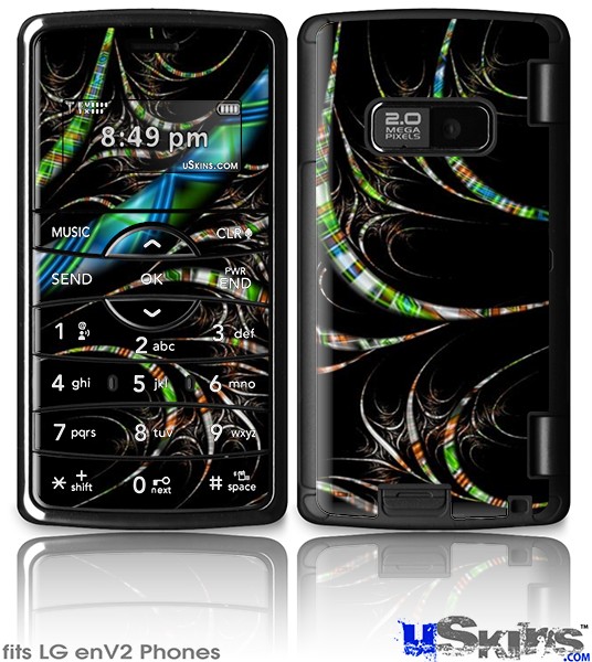 Skin covers front and back of LG enV2 cell phone.