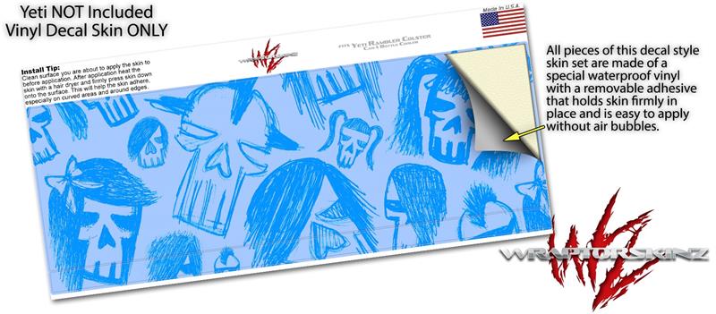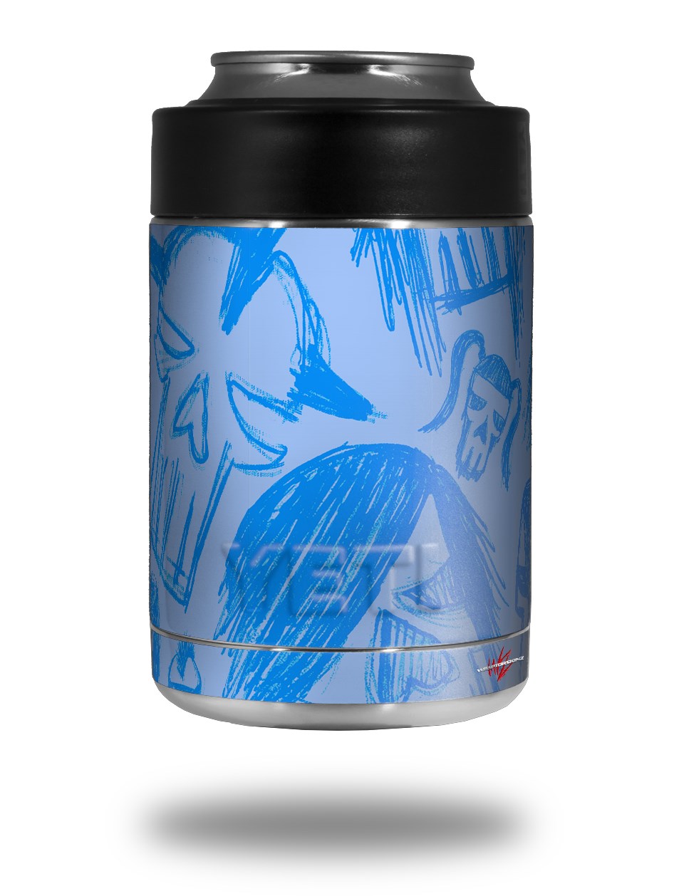 Skin Decal Wrap for Yeti Colster, Ozark Trail and RTIC Can Coolers - Skull Sketches Blue (COOLER NOT INCLUDED)