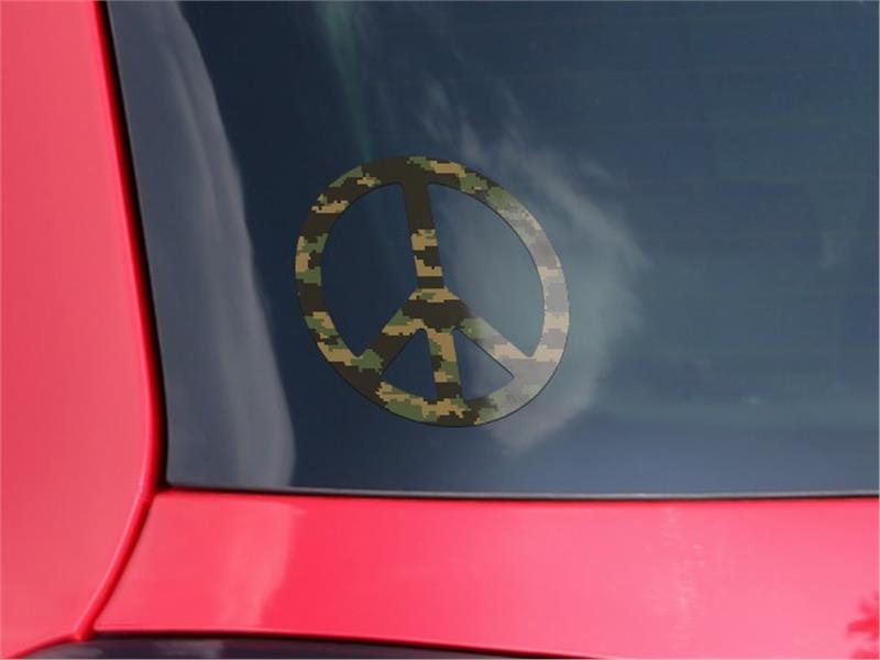 WraptorCamo Digital Camo Timber - Peace Sign Car Window Decal 6 x 6 inches