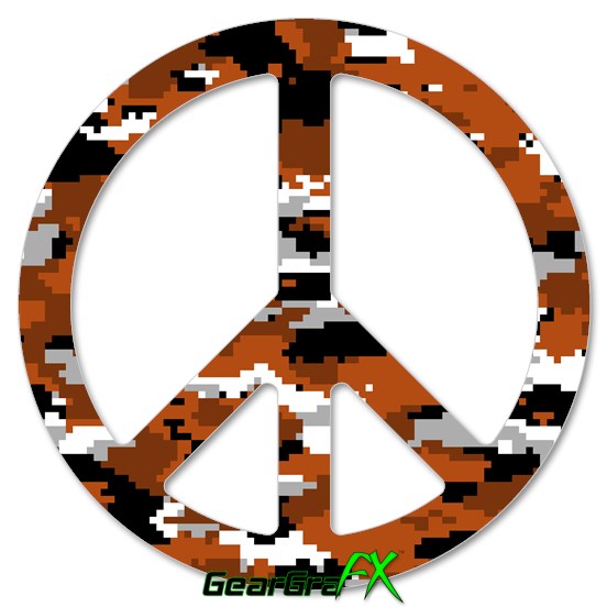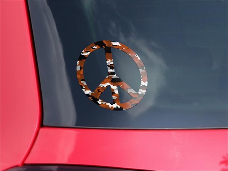 WraptorCamo Digital Camo Burnt Orange - Peace Sign Car Window Decal 6 x 6 inches
