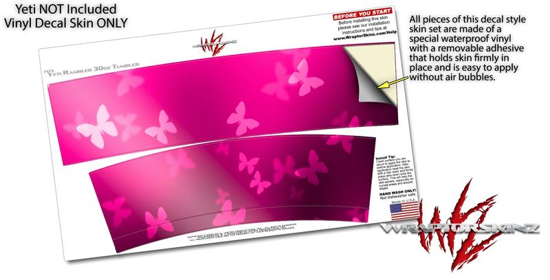 Skin Decal Wrap for Yeti Tumbler Rambler 30 oz Bokeh Butterflies Hot Pink (TUMBLER NOT INCLUDED)