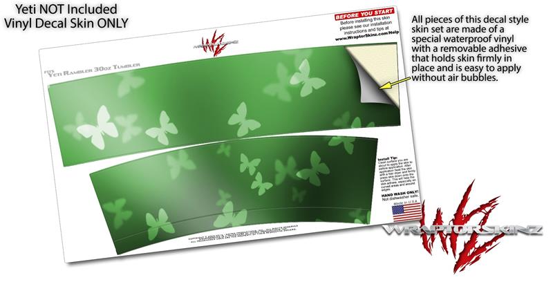 Skin Decal Wrap for Yeti Tumbler Rambler 30 oz Bokeh Butterflies Green (TUMBLER NOT INCLUDED)