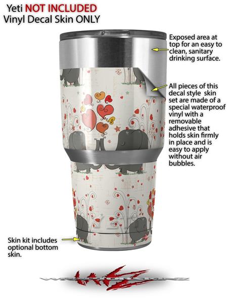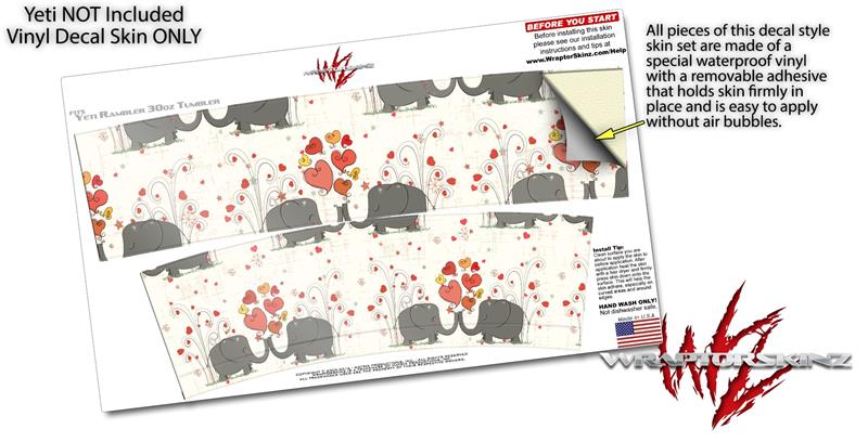 Skin Decal Wrap for Yeti Tumbler Rambler 30 oz Elephant Love (TUMBLER NOT INCLUDED)