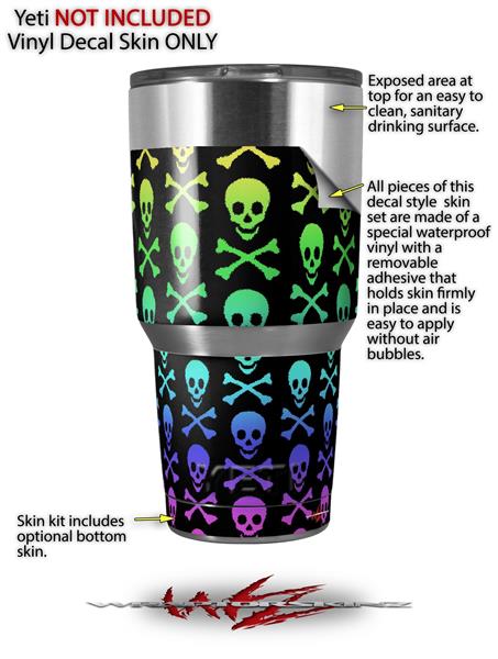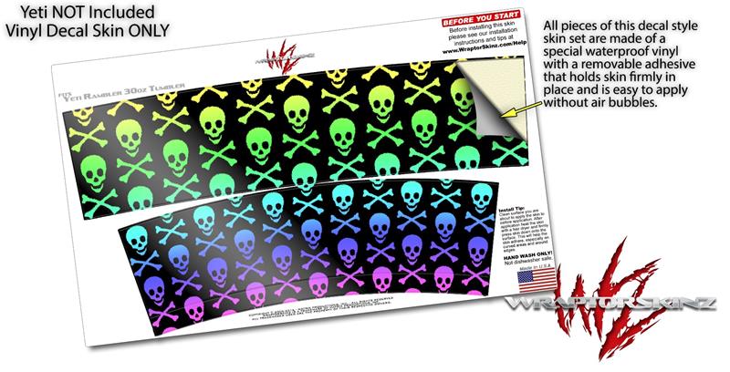 Skin Decal Wrap for Yeti Tumbler Rambler 30 oz Skull and Crossbones Rainbow (TUMBLER NOT INCLUDED)