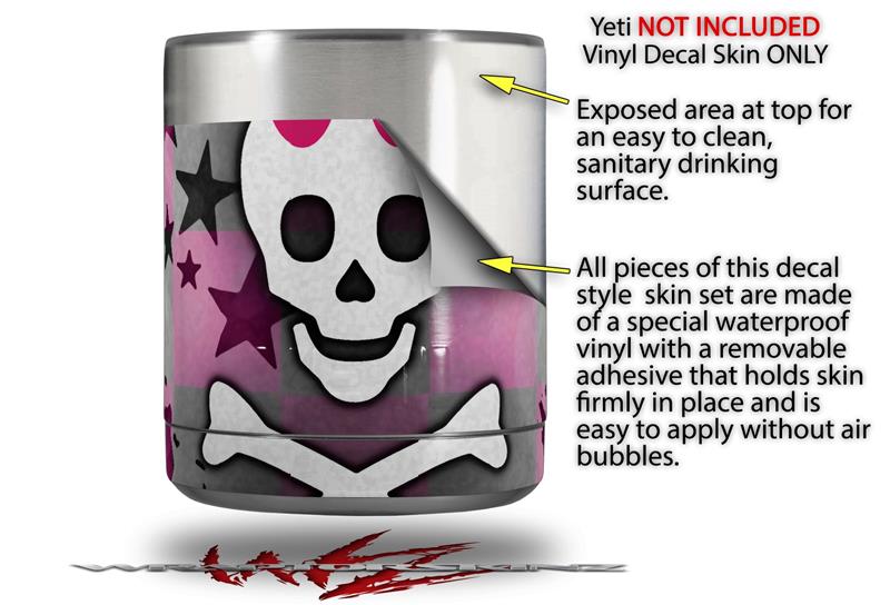 Skin Decal Wrap for Yeti Rambler Lowball - Princess Skull Heart Pink