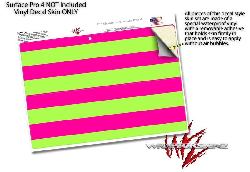 Psycho Stripes Neon Green and Hot Pink - Decal Style Vinyl Skin (fits Microsoft Surface Pro 4)