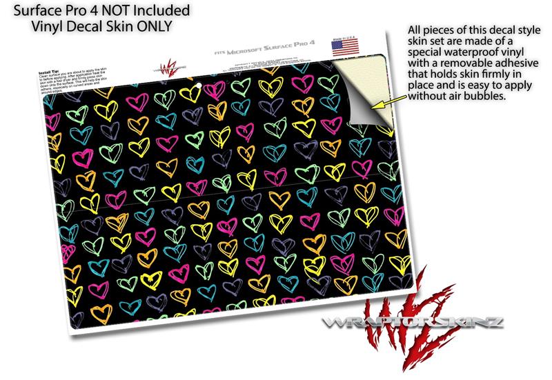 Kearas Hearts Black - Decal Style Vinyl Skin (fits Microsoft Surface Pro 4)