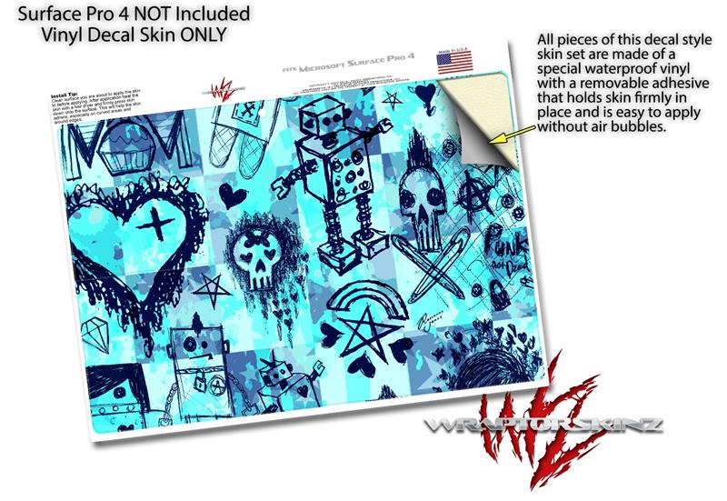 Scene Kid Sketches Blue - Decal Style Vinyl Skin (fits Microsoft Surface Pro 4)