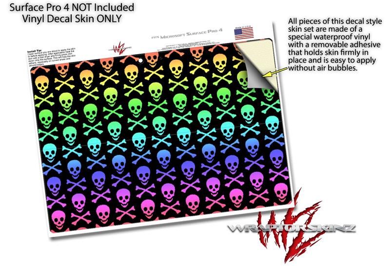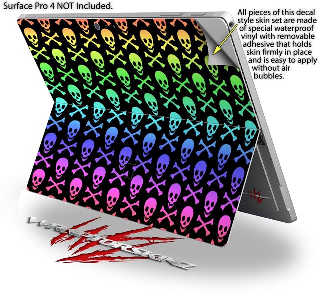 Skull and Crossbones Rainbow - Decal Style Vinyl Skin (fits Microsoft Surface Pro 4)