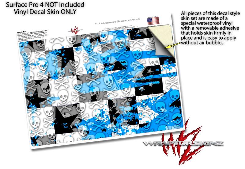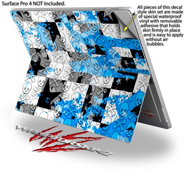 Checker Skull Splatter Blue - Decal Style Vinyl Skin (fits Microsoft Surface Pro 4)