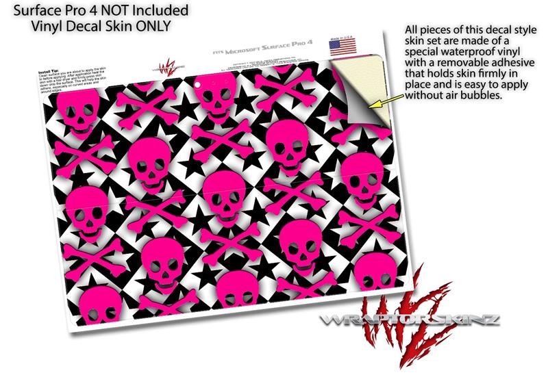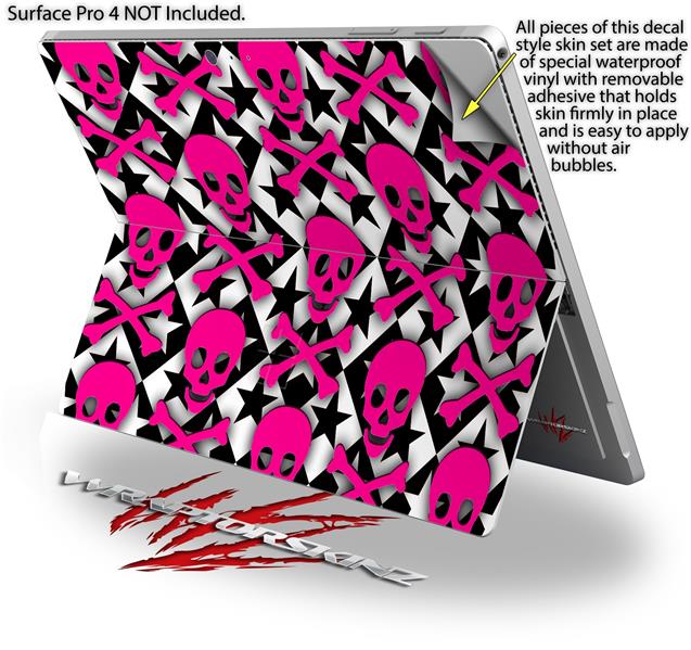Pink Skulls and Stars - Decal Style Vinyl Skin (fits Microsoft Surface Pro 4)