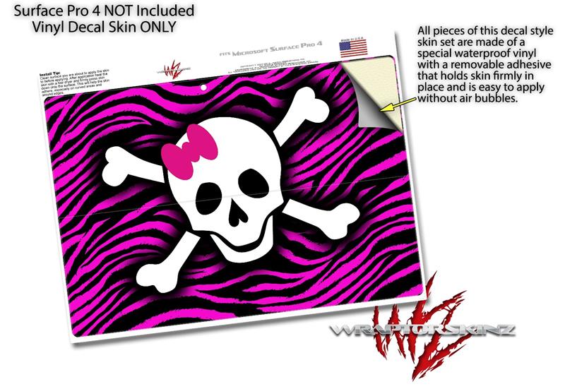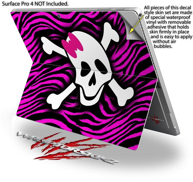 Pink Zebra Skull - Decal Style Vinyl Skin (fits Microsoft Surface Pro 4)
