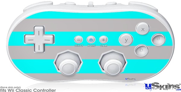 Wii Classic Controller Skin - Psycho Stripes Neon Teal and Gray