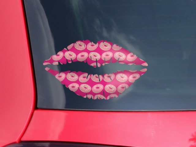 Lips Decal 9x5.5 Donuts Hot Pink Fuchsia