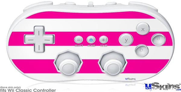 Wii Classic Controller Skin - Psycho Stripes Hot Pink and White