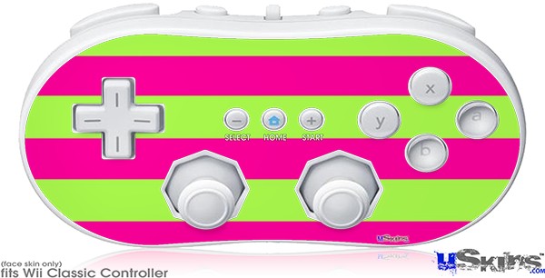 Wii Classic Controller Skin - Psycho Stripes Neon Green and Hot Pink