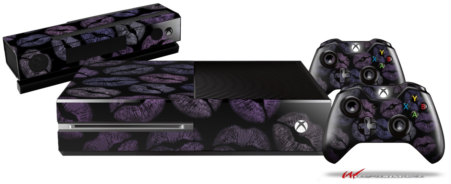 Purple And Black Lips - Holiday Bundle Decal Style Skin fits XBOX One Console Original, Kinect and 2 Controllers (XBOX SYSTEM NOT INCLUDED)