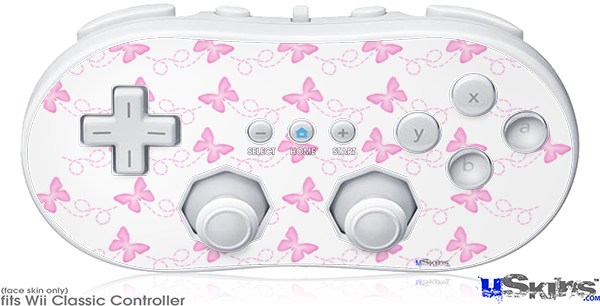 Wii Classic Controller Skin - Pastel Butterflies Pink on White