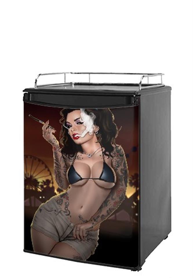 Kegerator Skin - Vaper 2 Sexy Pinup Girl (fits medium sized dorm fridge and kegerators)
