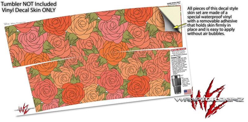 WraptorSkinz Skin Wrap compatible with RTIC 30oz ORIGINAL 2017 AND OLDER Tumblers Flowers Pattern Roses 06 (TUMBLER NOT INCLUDED)