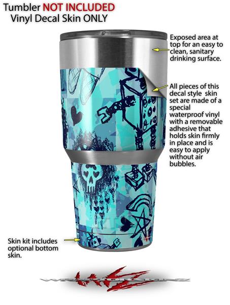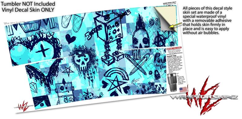 WraptorSkinz Skin Wrap compatible with RTIC 30oz ORIGINAL 2017 AND OLDER Tumblers Scene Kid Sketches Blue (TUMBLER NOT INCLUDED)