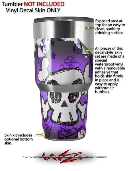 WraptorSkinz Skin Wrap compatible with RTIC 30oz ORIGINAL 2017 AND OLDER Tumblers Cartoon Skull Purple (TUMBLER NOT INCLUDED)