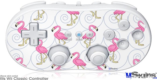Wii Classic Controller Skin - Flamingos on White