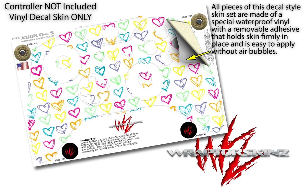 WraptorSkinz Decal Skin Wrap Set works with 2016 and newer XBOX One S / X Controller Kearas Hearts White (CONTROLLER NOT INCLUDED)