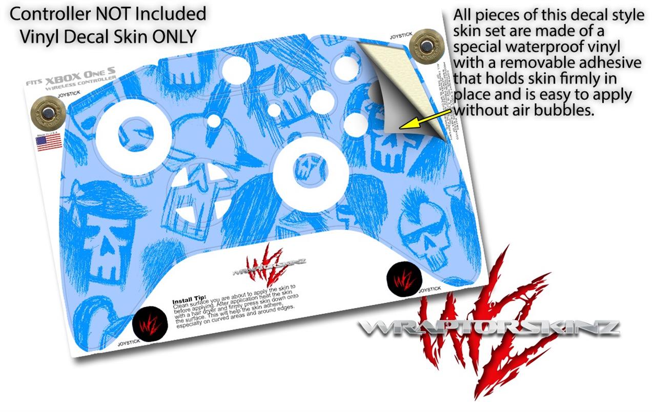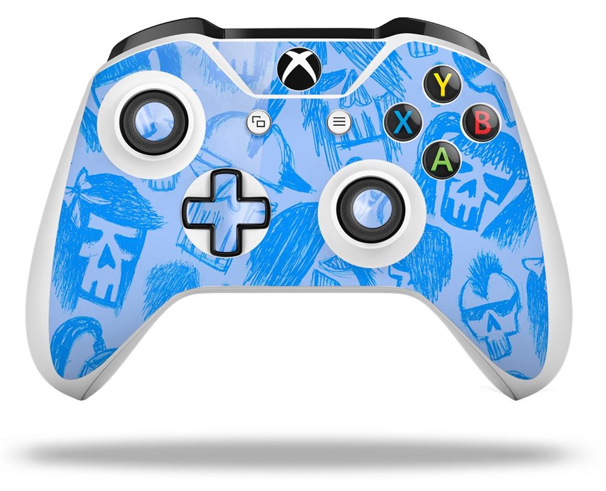 WraptorSkinz Decal Skin Wrap Set works with 2016 and newer XBOX One S / X Controller Skull Sketches Blue (CONTROLLER NOT INCLUDED)