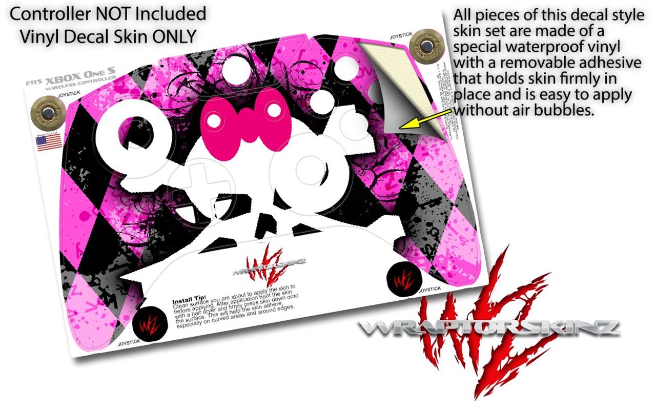 WraptorSkinz Decal Skin Wrap Set works with 2016 and newer XBOX One S / X Controller Pink Diamond Skull (CONTROLLER NOT INCLUDED)