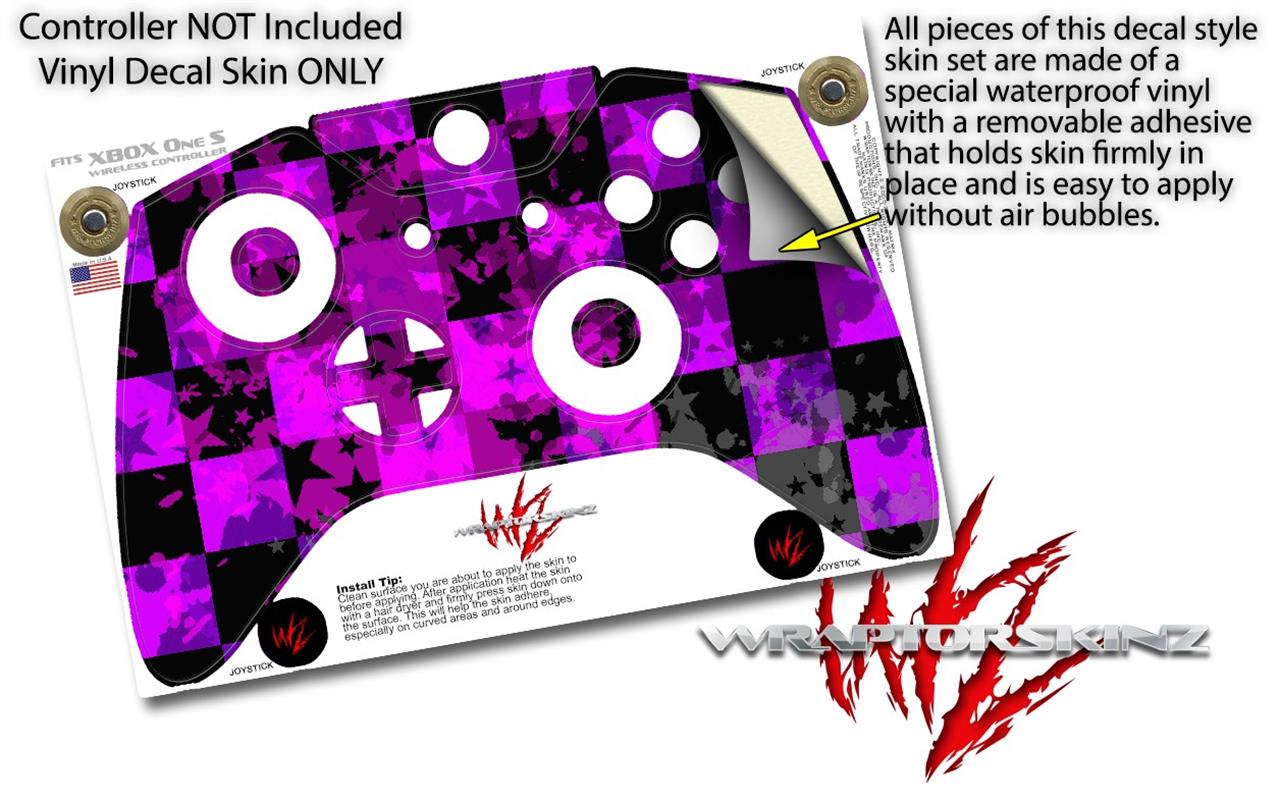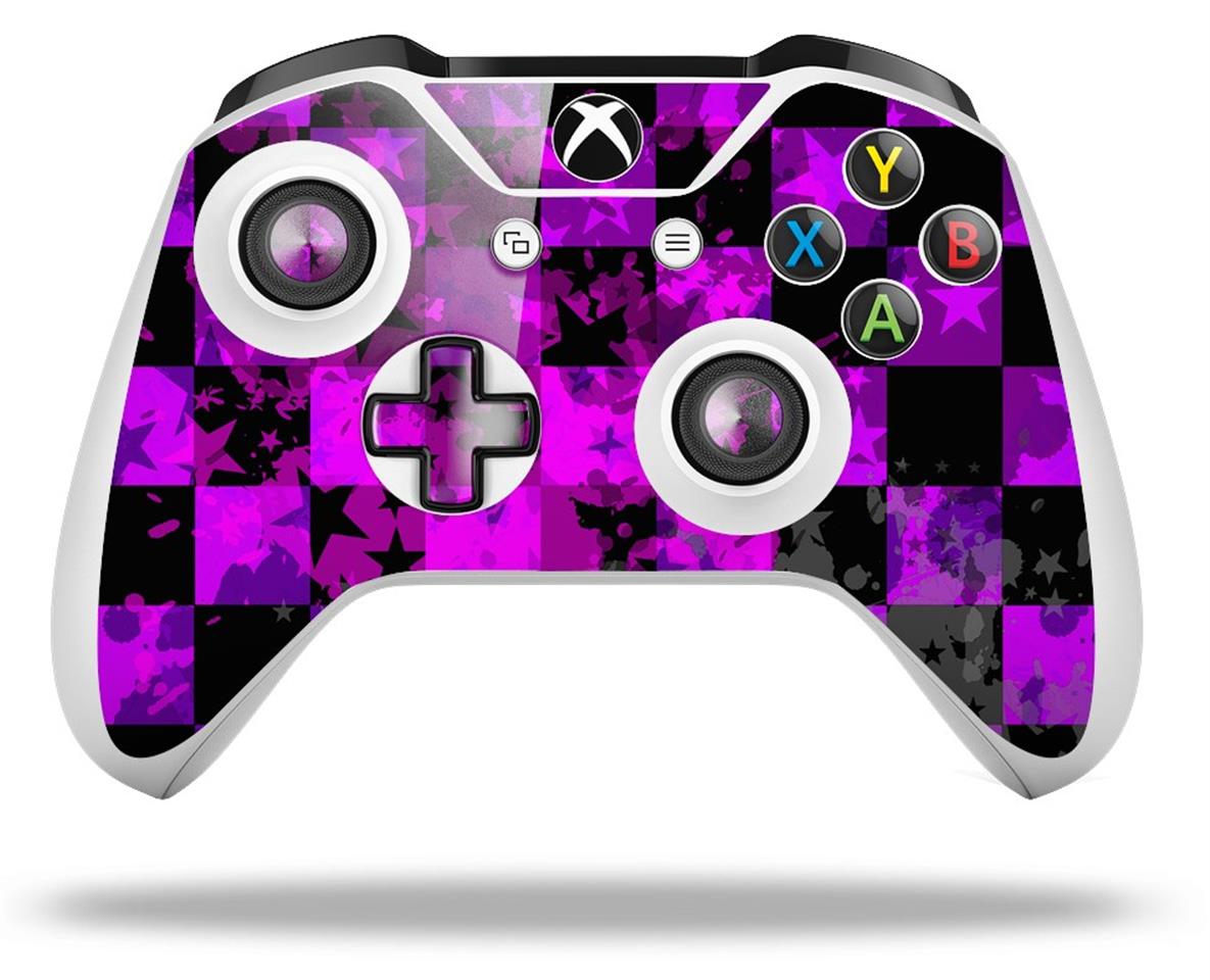 WraptorSkinz Decal Skin Wrap Set works with 2016 and newer XBOX One S / X Controller Purple Star Checkerboard (CONTROLLER NOT INCLUDED)
