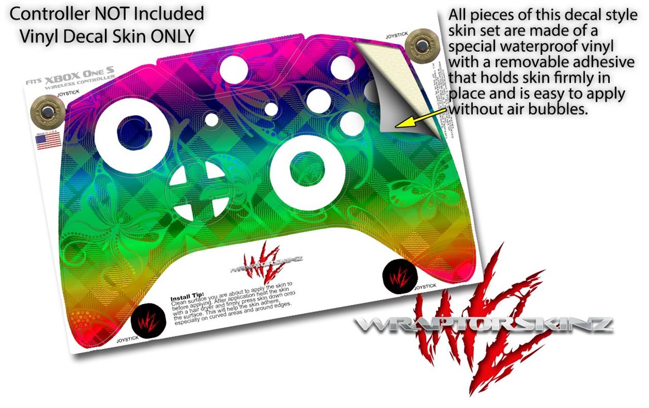 WraptorSkinz Decal Skin Wrap Set works with 2016 and newer XBOX One S / X Controller Rainbow Butterflies (CONTROLLER NOT INCLUDED)