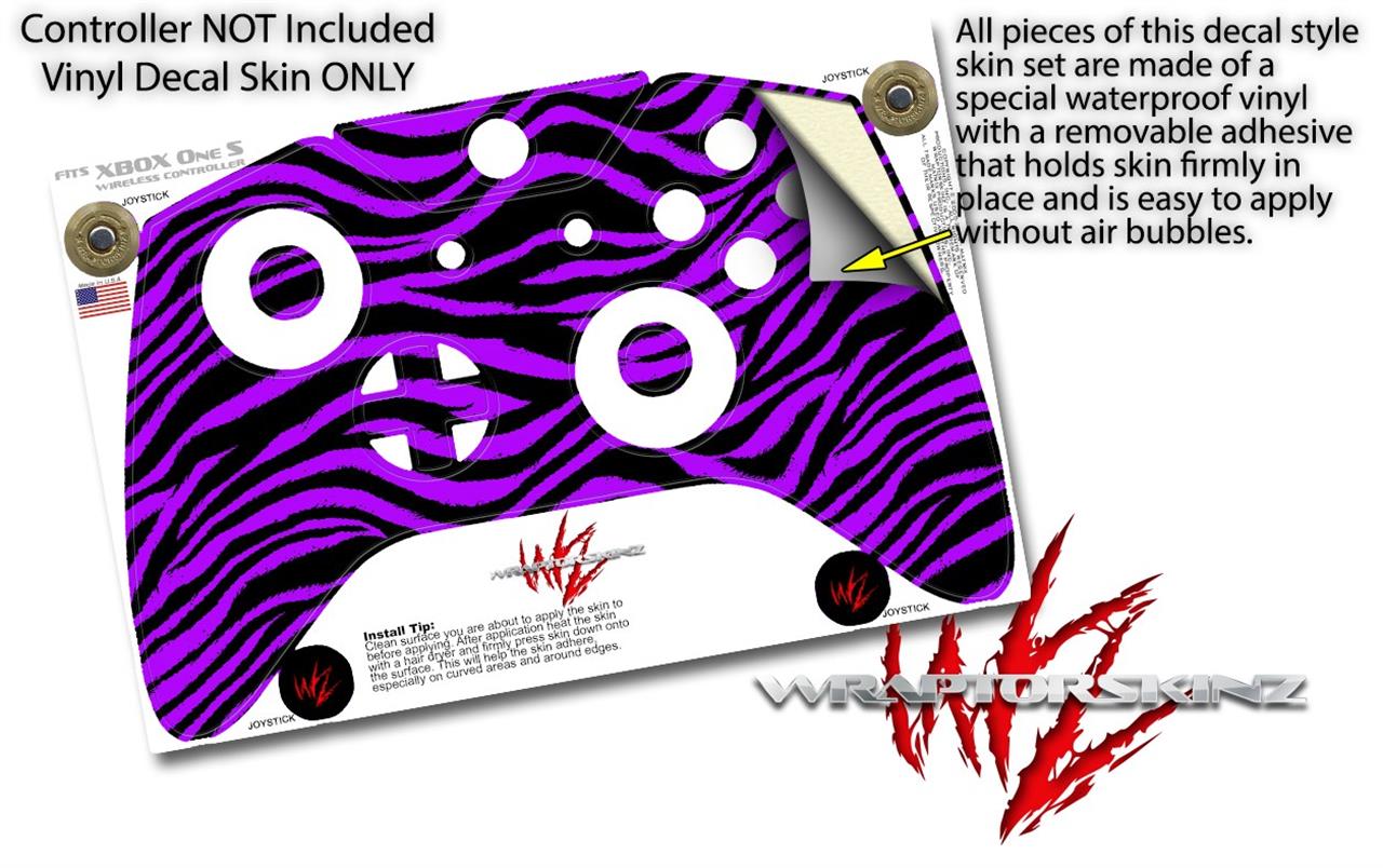 WraptorSkinz Decal Skin Wrap Set works with 2016 and newer XBOX One S / X Controller Purple Zebra (CONTROLLER NOT INCLUDED)