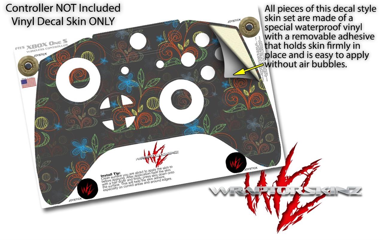 WraptorSkinz Decal Skin Wrap Set works with 2016 and newer XBOX One S / X Controller Flowers Pattern 07 (CONTROLLER NOT INCLUDED)