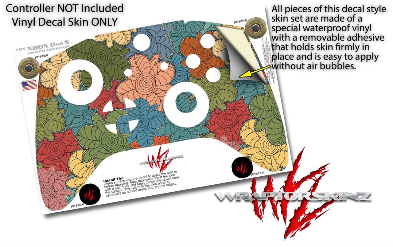 WraptorSkinz Decal Skin Wrap Set works with 2016 and newer XBOX One S / X Controller Flowers Pattern 01 (CONTROLLER NOT INCLUDED)