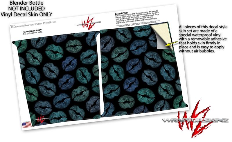 Decal Style Skin Wrap works with Blender Bottle 22oz ProStak Blue Green And Black Lips (BOTTLE NOT INCLUDED)
